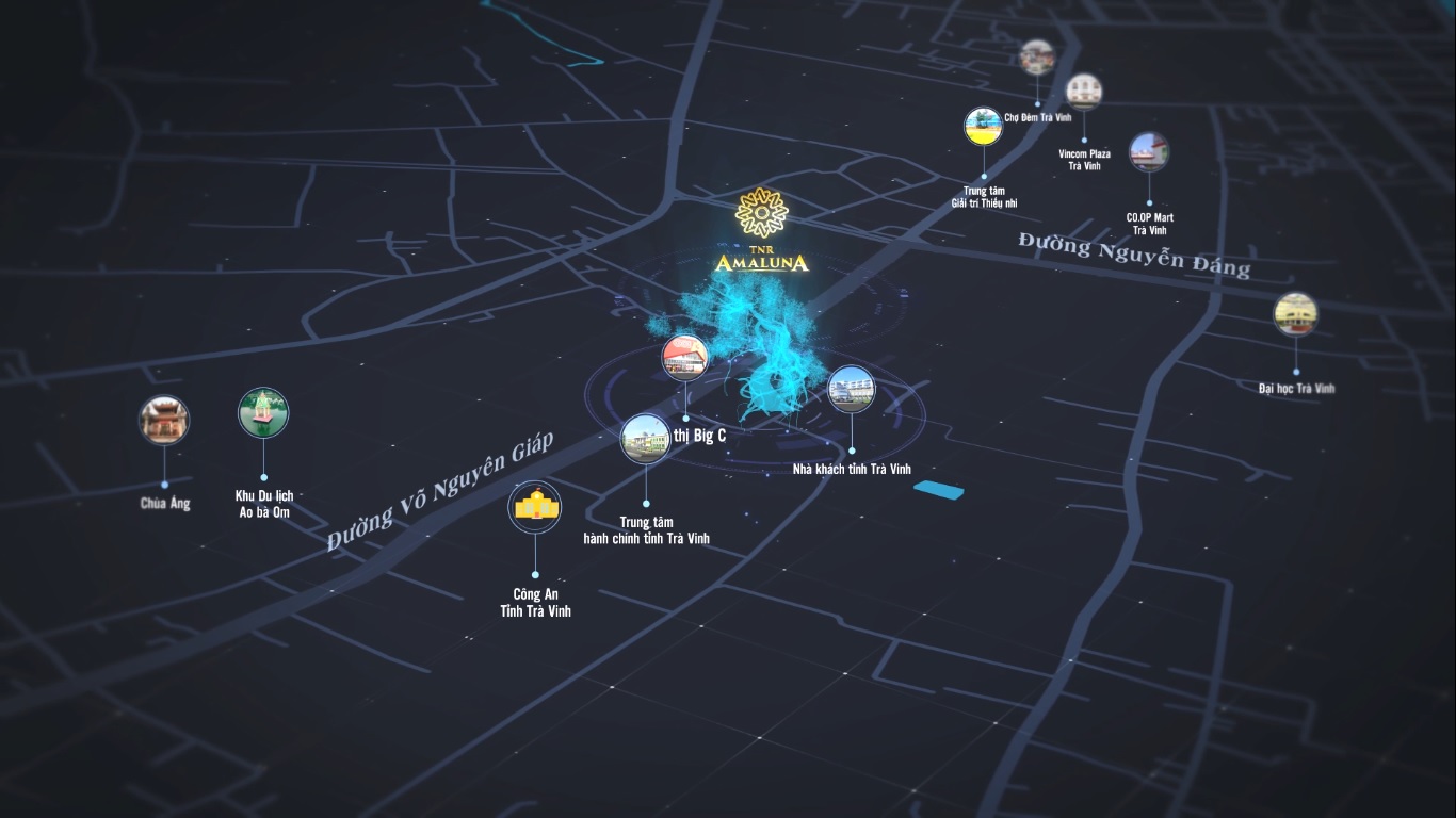 TNR Amaluna tọa lạc tại mặt tiền trục đường huyết mạnh Võ Nguyên Giáp (Trung tâm hành chính tỉnh Trà Vinh), thuận tiện kết nối với các tiện ích xung quanh. Khoảng cách từ dự án đến các tiện ích ngoại khu của thành phố như: Trung tâm thương mại Go!!!, khu du lịch sinh thái Huỳnh Kha, trung tâm hành chính tỉnh và Đài phát thanh truyền hình Trà Vinh,… chỉ mất vài phút